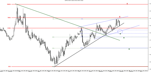 Z kolei zejście kursu poniżej poziomu 5,65 (linia trendu wzrostowego z genezą w czerwcu 2014 i 61,8% zniesienie odbicia z maja, czerwca i lipca) zmieniłoby trend na spadkowy w średnim terminie i pozwoliłoby na ruch przynajmniej do poziomu 5,43 (geneza na wykresie).